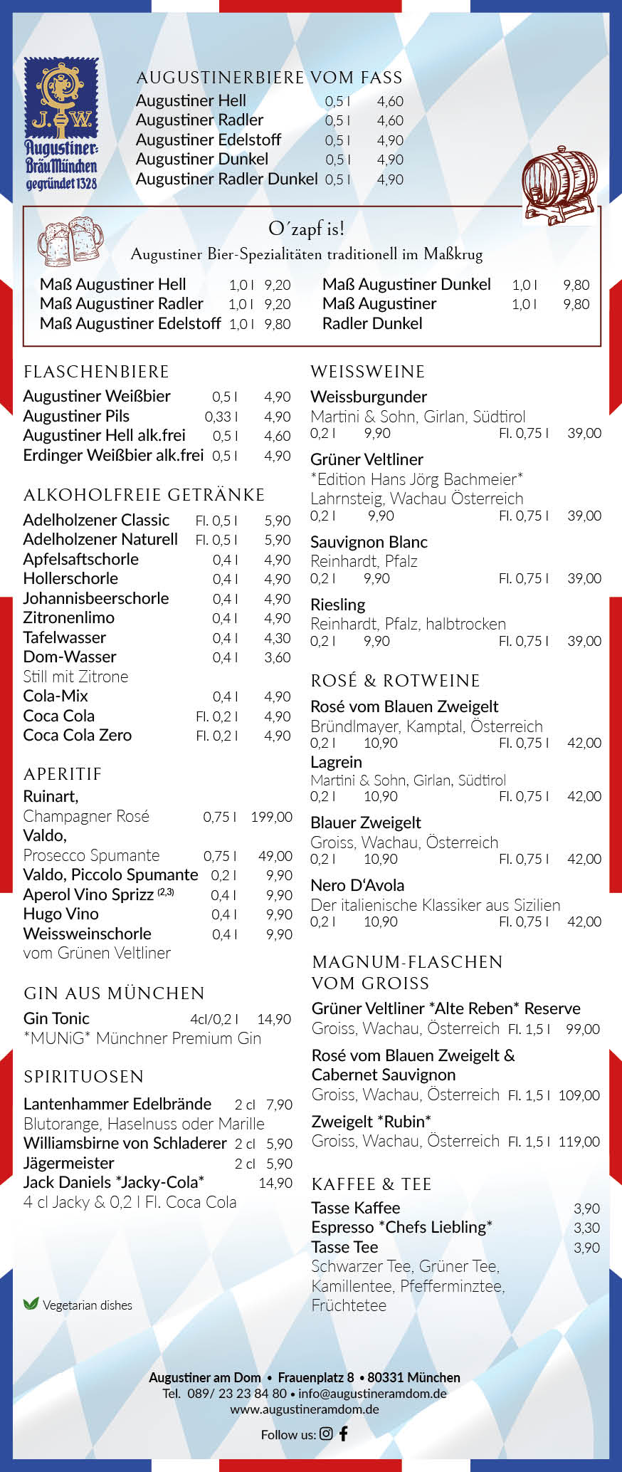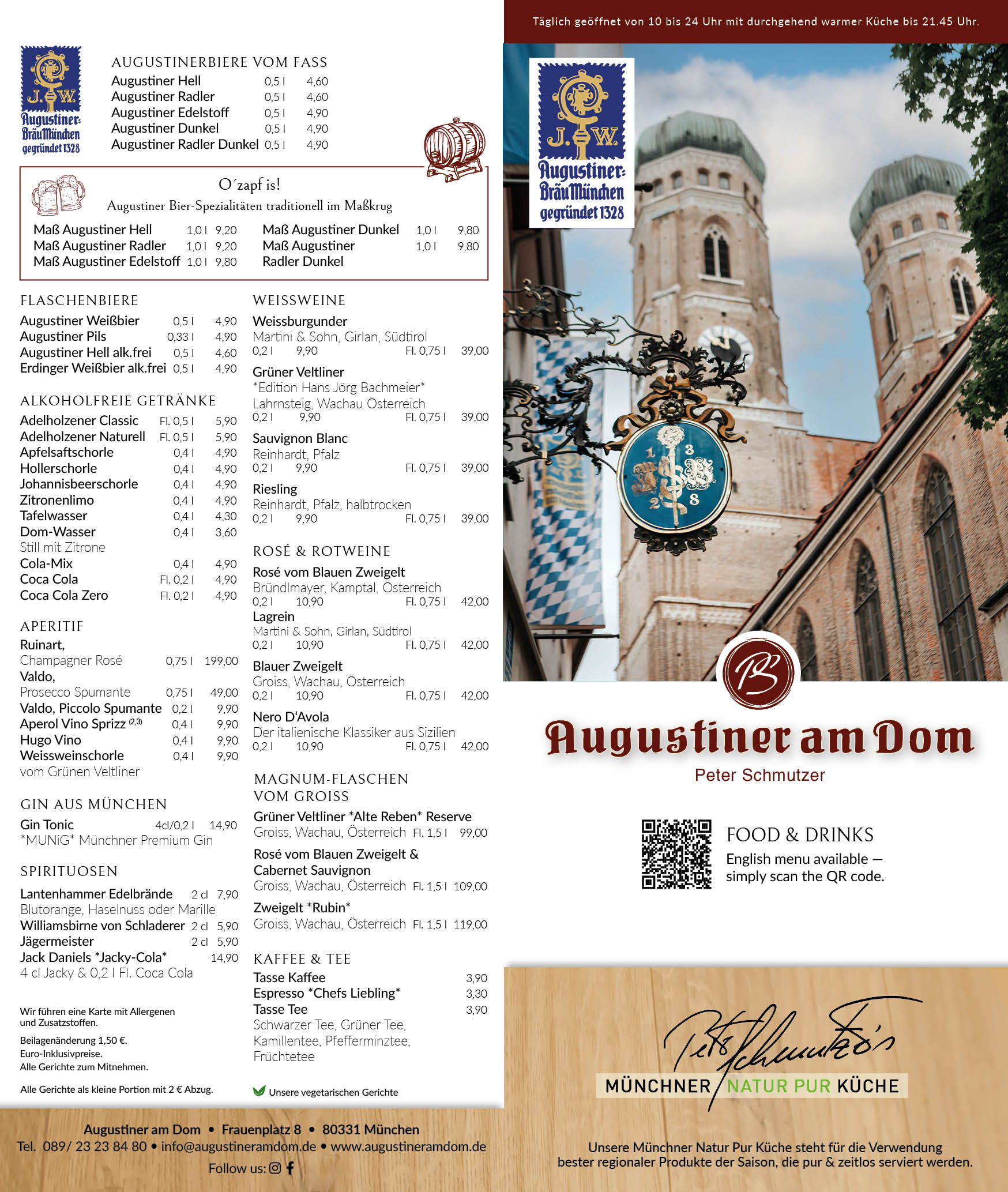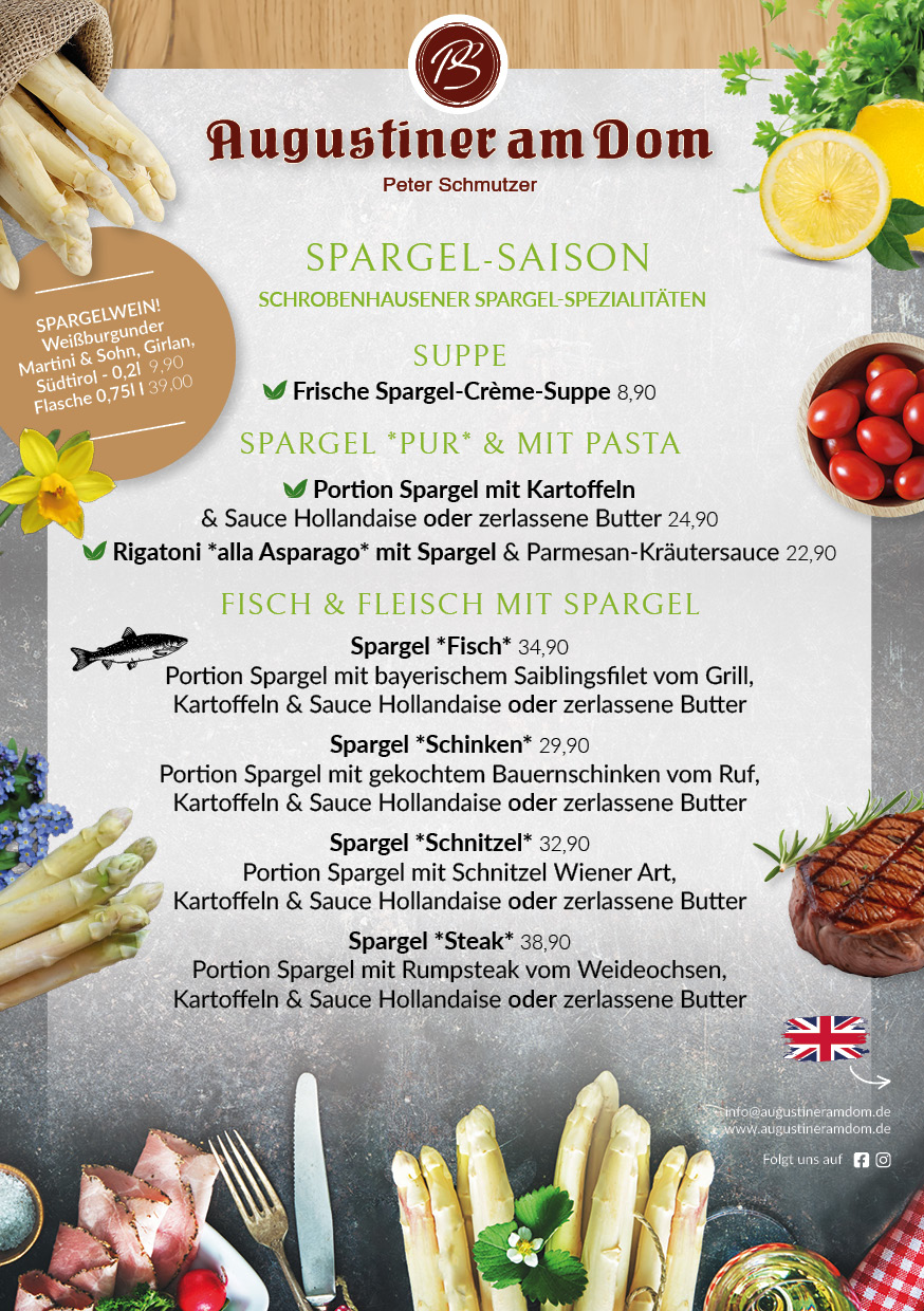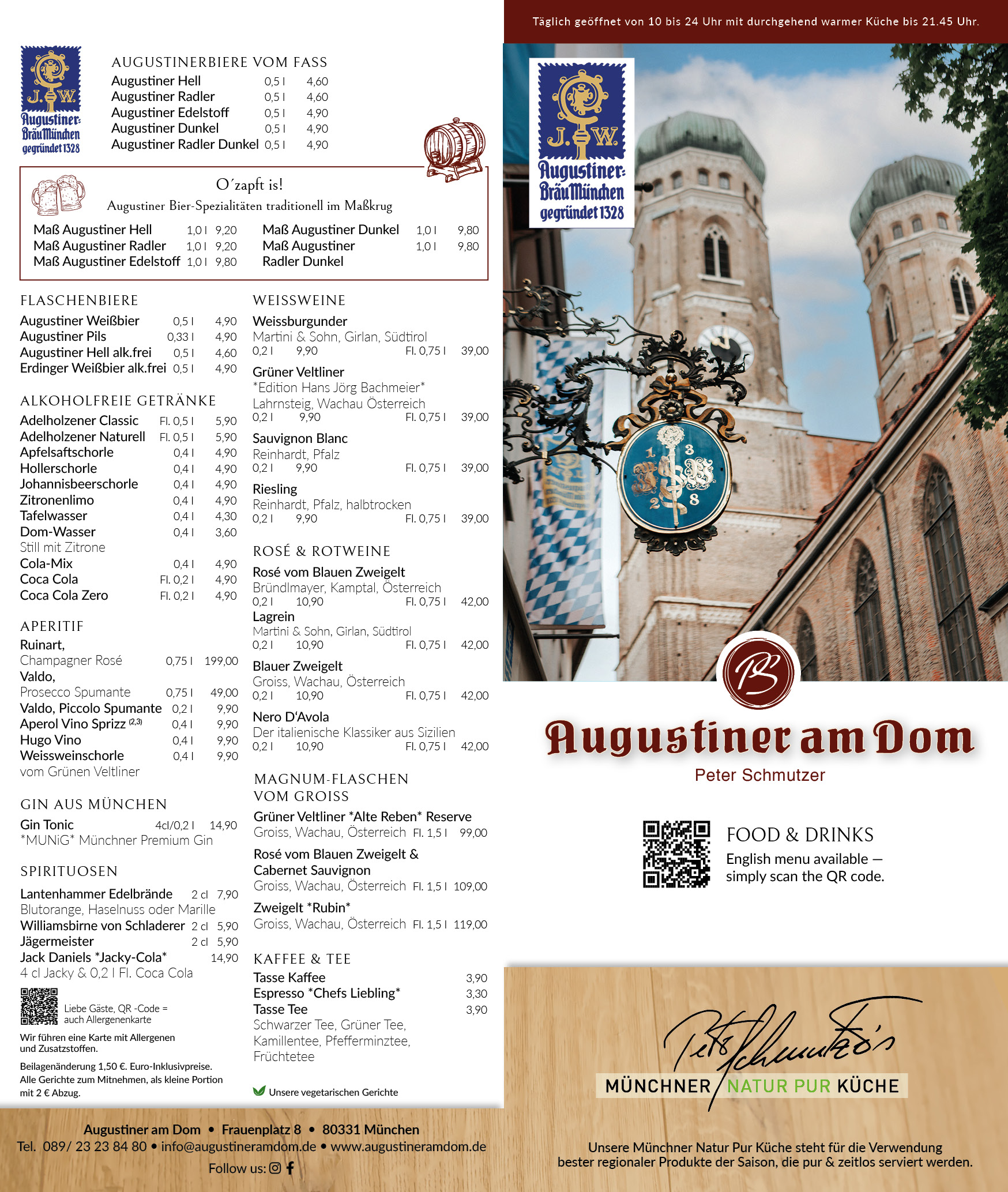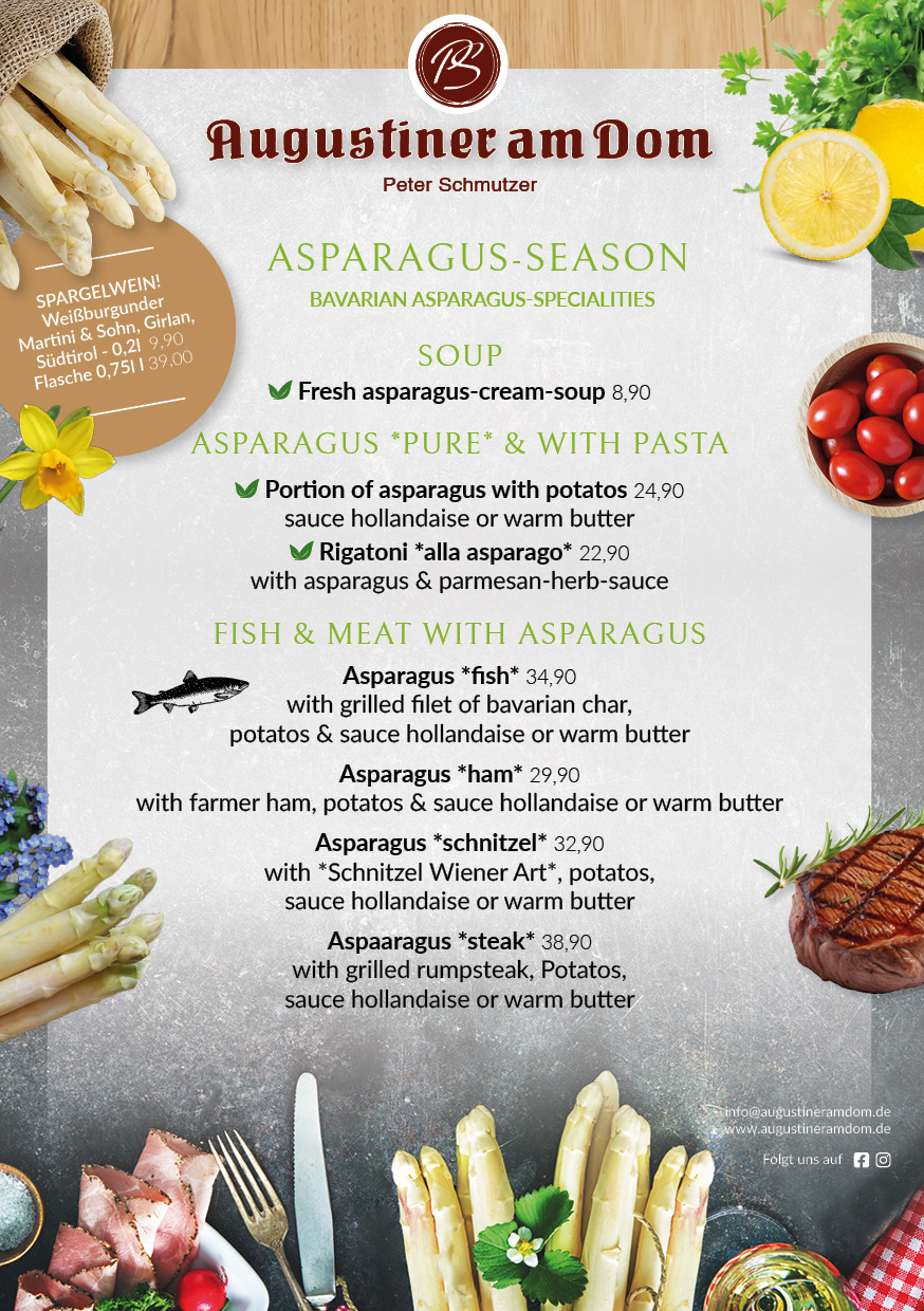 Bei größeren Gruppen (mehr als 20 Personen) wird Ihre Reservierung bei uns zur “Chefsache”. Bitte schreiben Sie uns hierzu eine kurze E-Mail an info@augustineramdom.de.
