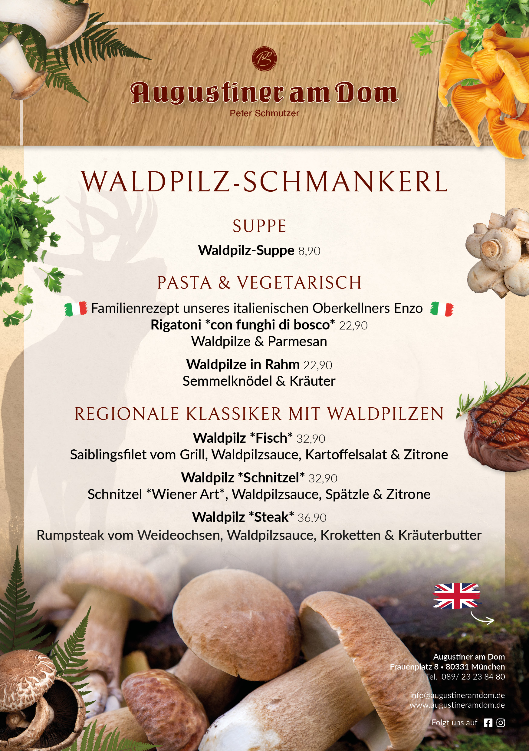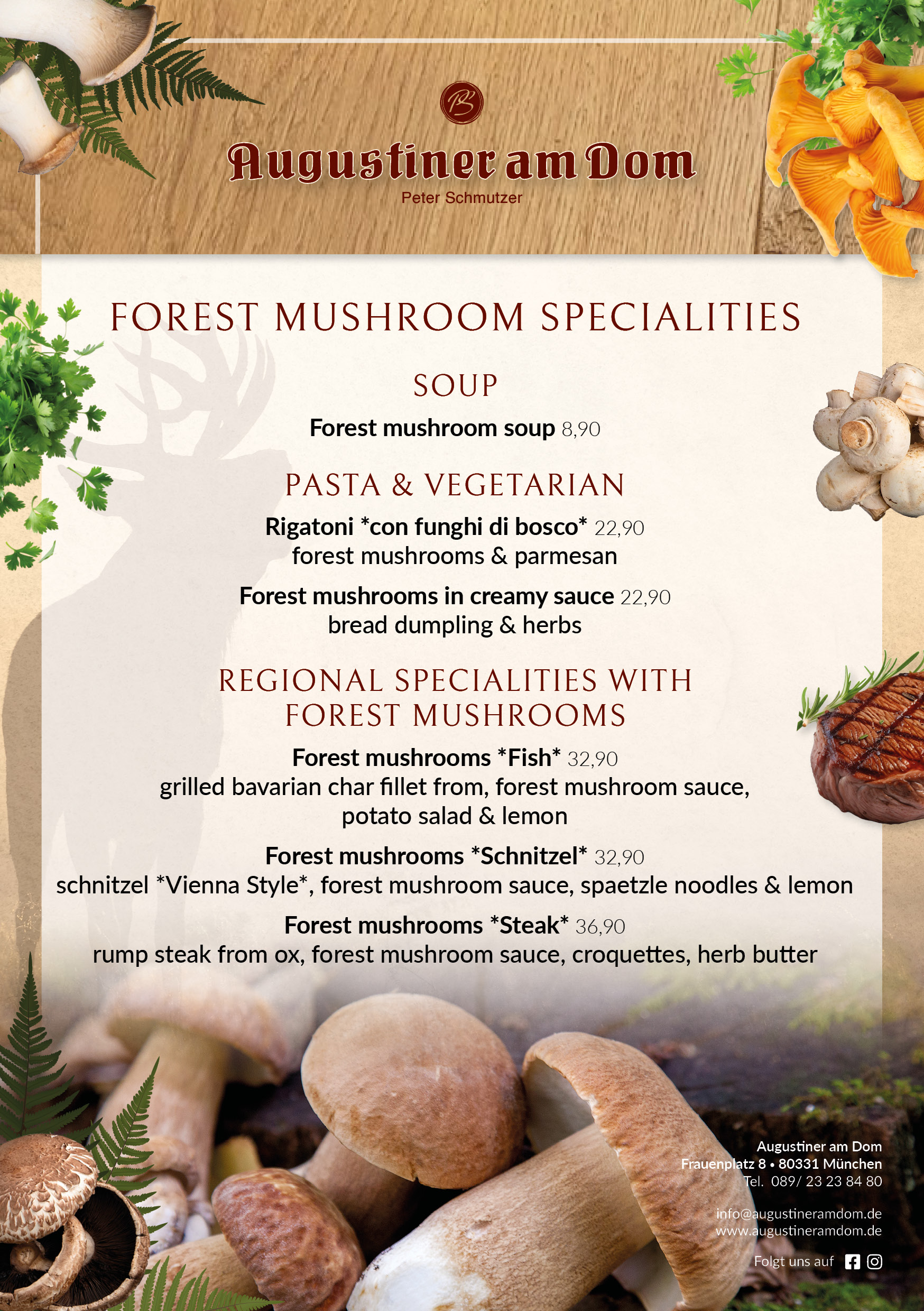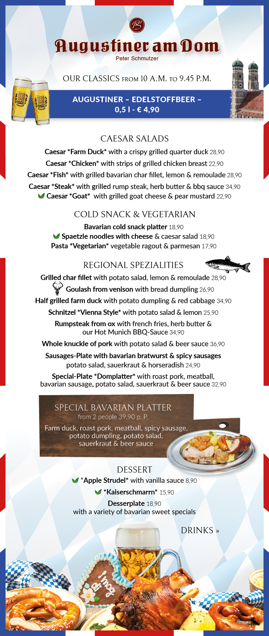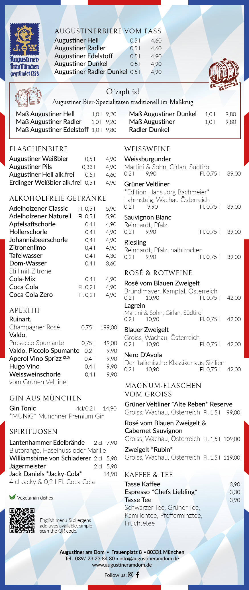 Bei größeren Gruppen (mehr als 20 Personen) wird Ihre Reservierung bei uns zur “Chefsache”. Bitte schreiben Sie uns hierzu eine kurze E-Mail an info@augustineramdom.de.
